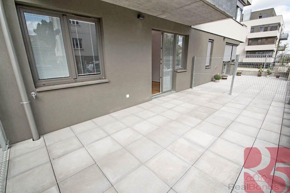 Pronájem novostavby 2kk 53m2, P4 Michle, ul. Hadovitá. Byt má prostornou terasu 20m2, garáž, sklep.