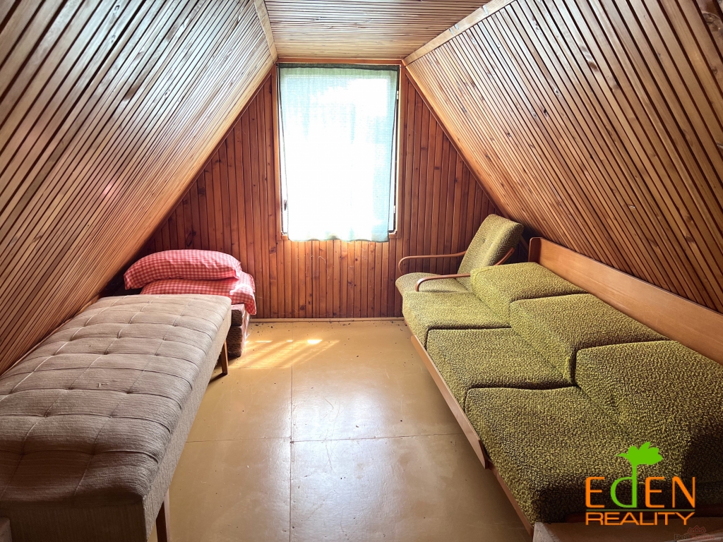 Nabízíme k prodeji rekreační chatu v žádané lokalitě Kamínek, Dobřany (okres Plzeň-jih). Jedná se o částečně podsklepenou chatu s přízemím a obytným podkrovím postavenou kolem roku 1984. Střešní krytina eternit. Elektrická energie zavedena do chaty. Na pozemku vrtaná studna (cca 40 m), voda zatím není zavedena do objektu,suché WC. Na pozemku dále najdete venkovní posezení, menší nadzemní bazén, skleník, oplocení drátěným pletivem. Přístup k nemovitosti po nezpevněné komunikaci.