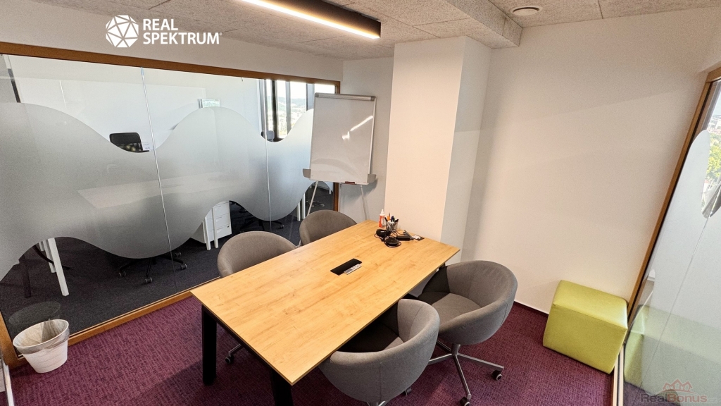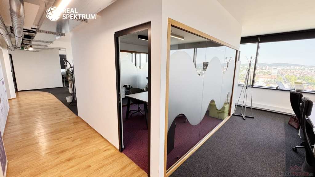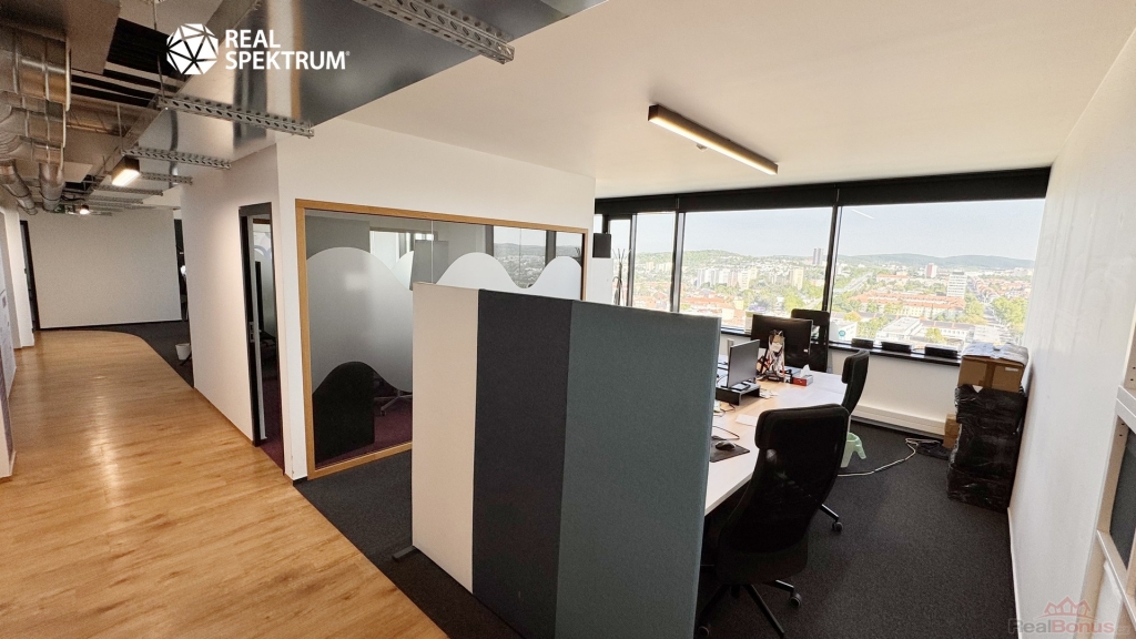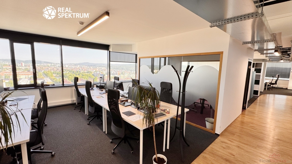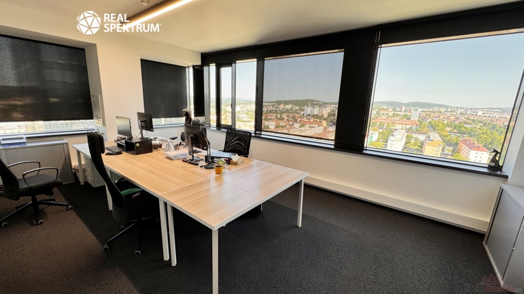 Výhled? Super. Přístup? 24/7. Vybavení? Kompletní ? zdvojené podlahy, zátěžové koberce, otevíratelná okna, žaluzie, vysokorychlostní internet, tepelná čerpadla. Recepce, výtahy, ostraha, parkování? Samozřejmost.