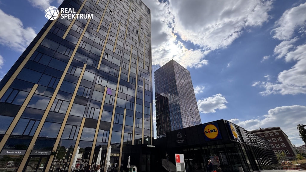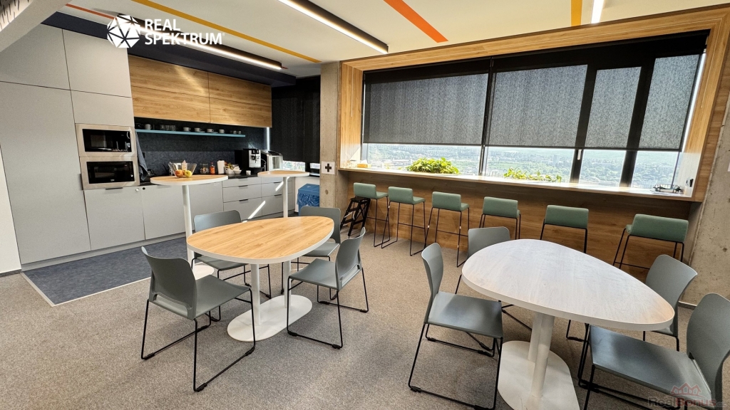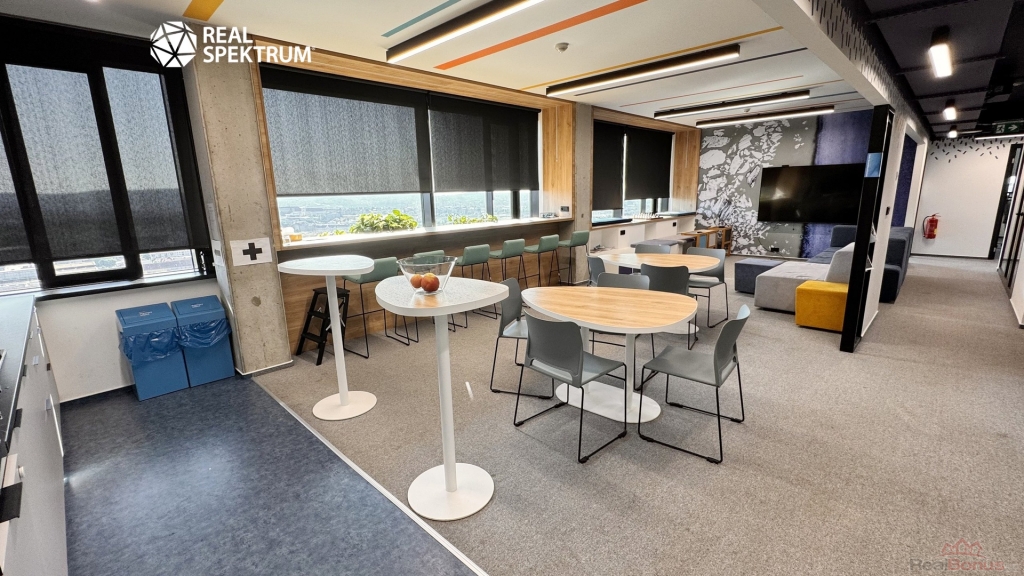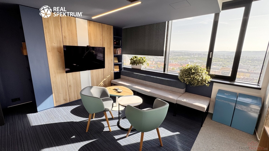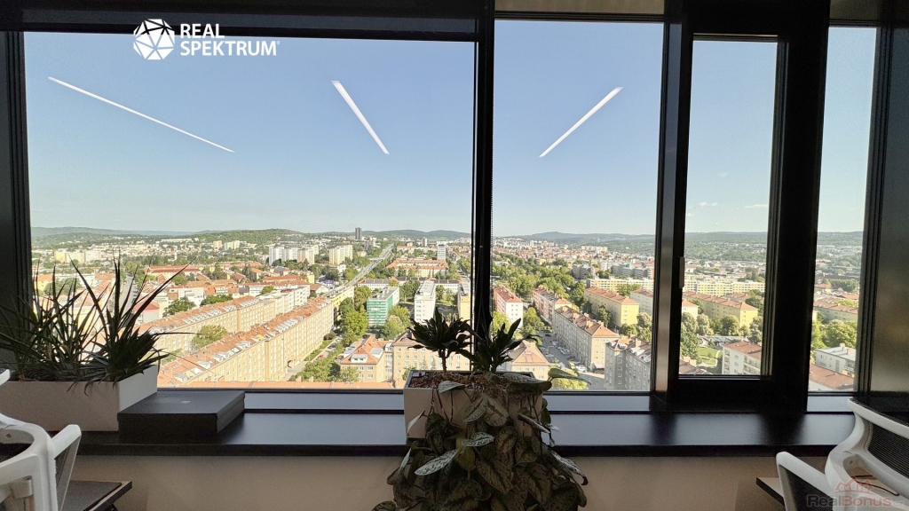Výhled? Super. Přístup? 24/7. Vybavení? Kompletní ? zdvojené podlahy, zátěžové koberce, otevíratelná okna, žaluzie, vysokorychlostní internet, tepelná čerpadla. Recepce, výtahy, ostraha, parkování? Samozřejmost.