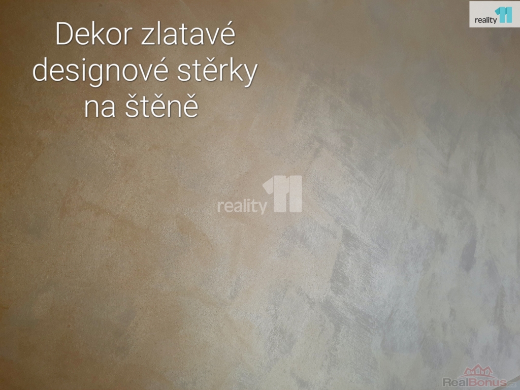 dotykové vypínače, designové luxfery, černá toaleta, nová okna s trojsklem pro odhlučnění a úsporu energie, designová stěrka na stěnách se zlatým efektem