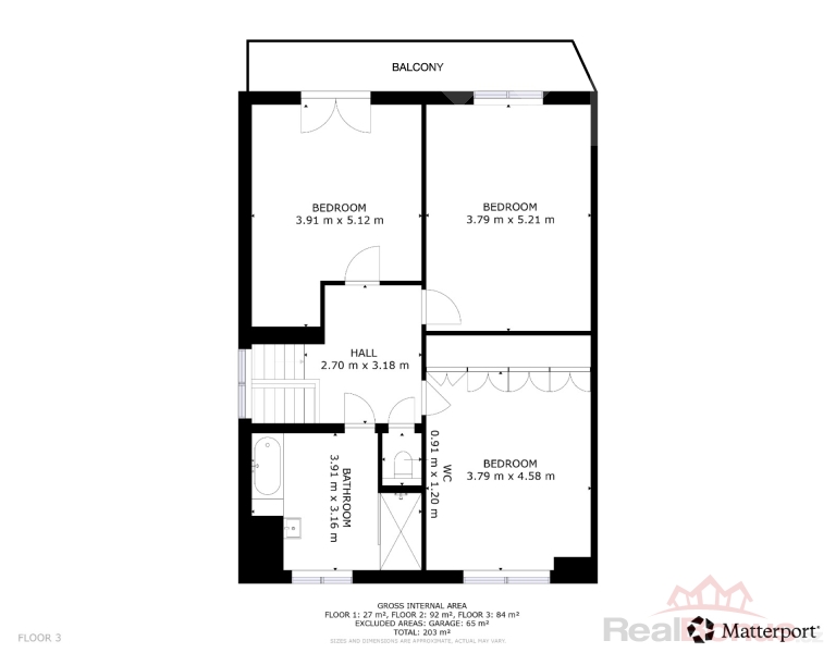 • tři samostatné pokoje (20 m², 20 m², 19 m²)