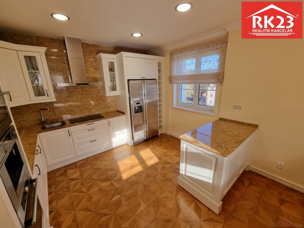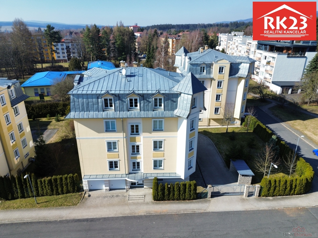 Prodej nadstandardního bytu 3+kk s lodžií o podlahové ploše 160 m2, který se nachází ve 4. patře bytového domu s výtahem v Mariánských Lázních na ul. Bezejmenná. Byt je rozprostřen jako jediný na celém patře, působí prostorným a světlým dojmem. V přední části se nachází rozlehlý pokoj s lodžií, kuchyňský kout a toaleta s technickým zázemím. V zadní, soukromé části bytu jsou umístěny dva pokoje a prostorná koupelna s masážní vanou, sprchovým koutem a toaletou. Vytápění bytu a ohřev vody je zajištěno pomocí vlastního plynového kondenzačního kotle. K bytu lze prodat prostornou dvojgaráž o velikosti 34 m2, která se nachází v přízemí domu. Bytový dům je umístěn v uzavřeném komplexu dvou budov a je zde možnost relaxace a dalšího parkování. V okolí se nachází veškerá občanská vybavenost, lázeňské parky a léčivé prameny. Více informací u makléře. S financováním rádi poradíme.