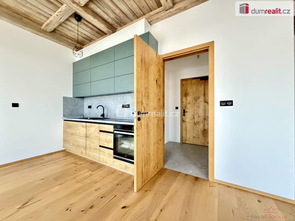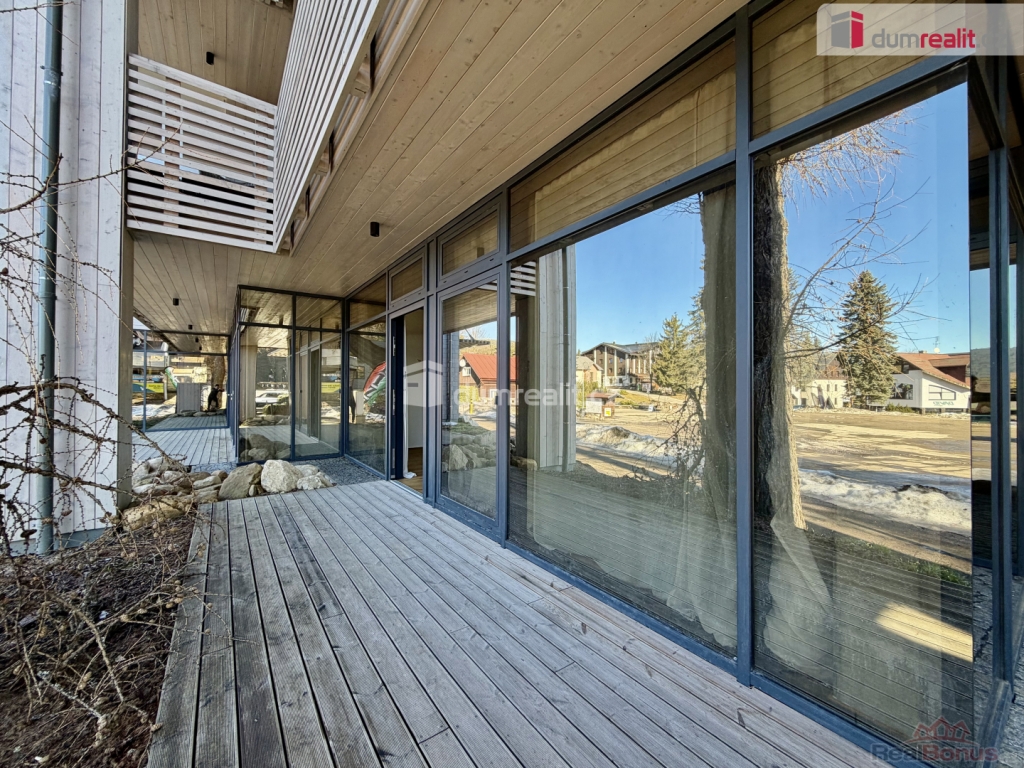 Včetně kuchyňské linky, parkovacího stání a sklepní kóje., prodej atraktivního apartmánu o dispozici 1+kk a podlahové ploše 38 m s terasou o výměře 5 m, situovaný v přízemí novostavby prestižního apartmánového projektu Corso Harrachov, přímo v centru vyhledávaného horského střediska Harrachov.