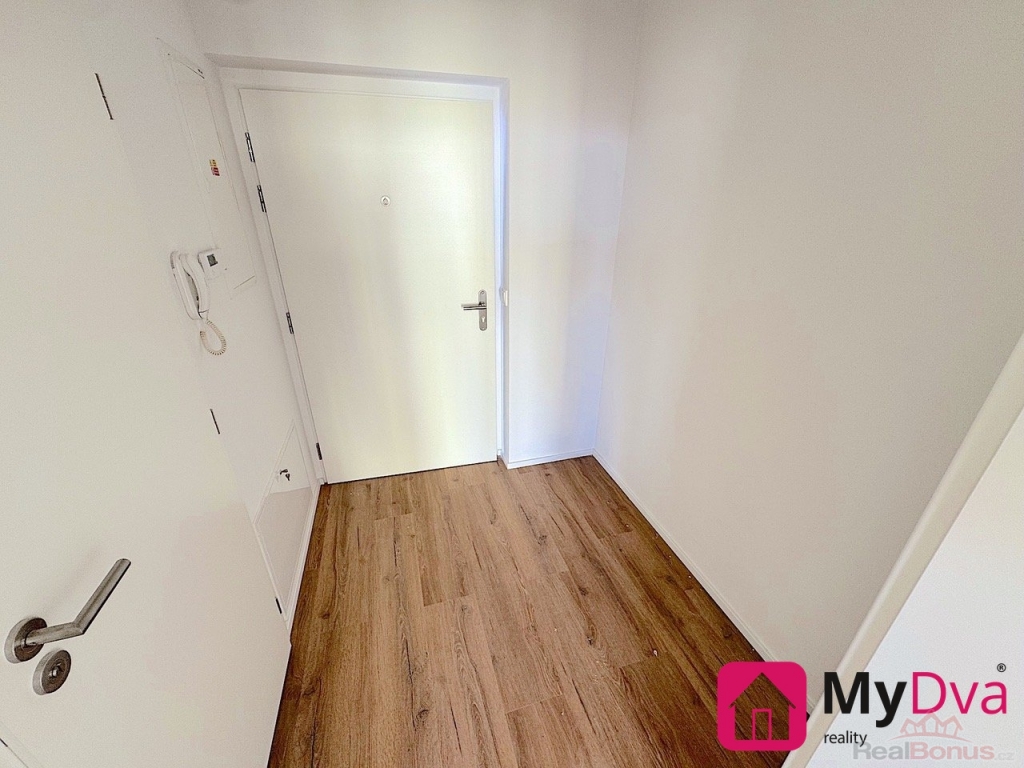 Byt se skládá z prostorné předsíně, obývacího pokoje spojeného s kuchyní se vstupem na balkon, koupelny se sprchovým koutem a toalety. Pronajímá se nevybavený.