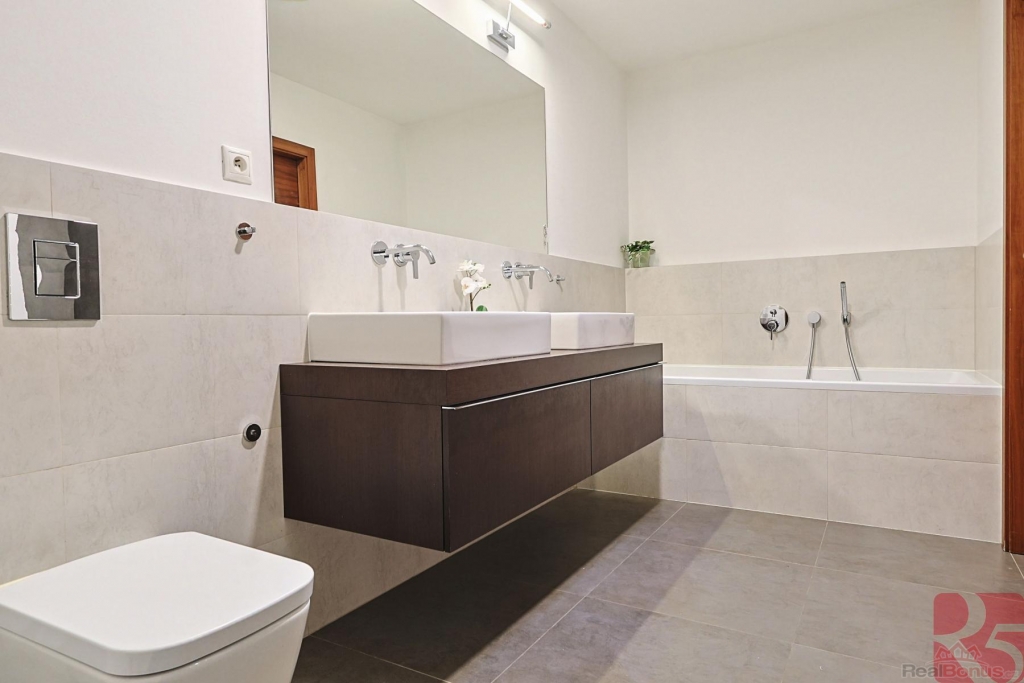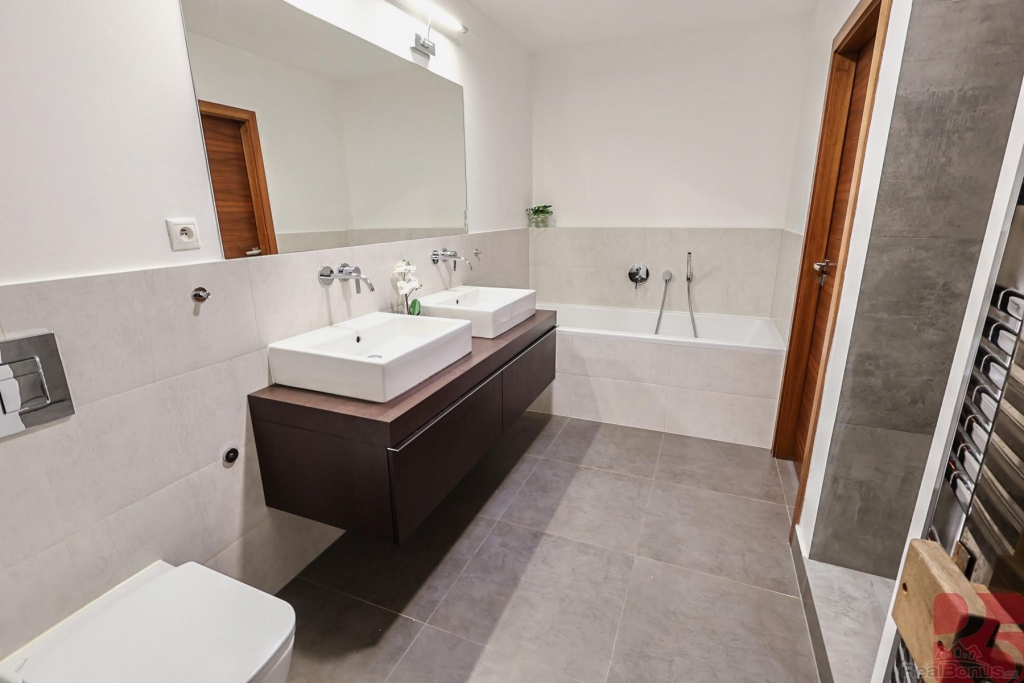Prodej luxusního bytu 4kk 118m2 + terasa, zahrada, sauna, dvě garážová stání, sklep, komora, Praha - Uhříněves, ul. V Bytovkách, ideální místo pro rodinné bydlení.