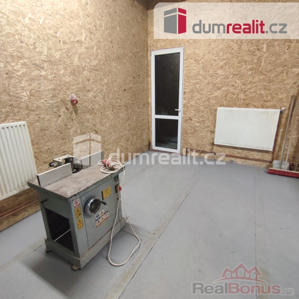 , Dumrealit.cz Vám zprostředkuje pronájem prostor o výměře 200 m, které doposud sloužily jako truhlářská dílna na výrobu nábytku a dalších komponentů. Tyto prostory mají dva přístupy. První část tvoří najížděcí rampa, sloužící k nakládce a vykládce materiálu a hotového zboží. V druhém případě lze do objektu vstoupit vedlejšími schody a uzamykatelnými dveřmi, které vedou na zadní chodbu. Ta propojuje dvě části celého komplexu. Chodby je možno využít k uskladnění materiálu. Samostatné vnitřní prostory slouží k výrobě. Dílna je vybavena stroji ke zpracování a obrábění dřeva - jedná se o pásovou brusku, formátovací pilu s prořezem, protahovačku s hoblovkou, dále odsávání, frézu, pásovou pilu, vertikální a horizontální vrtačku. Toto vše je součástí nájmu.