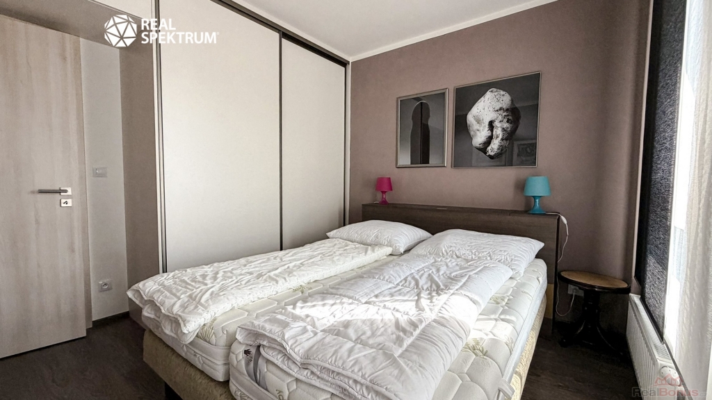 Samostatná ložnice poskytuje klidné zázemí a dostatek úložného prostoru. Balkon navazující na obytný prostor je ideálním místem pro ranní kávu nebo večerní odpočinek.