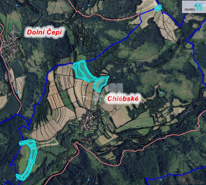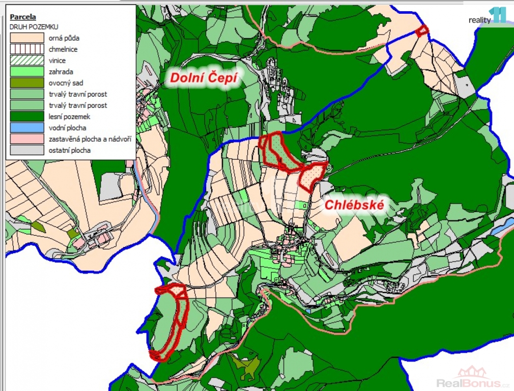 Některé pozemky jsou propachtovány a jsou nabízeny k prodeji jako jeden celek.