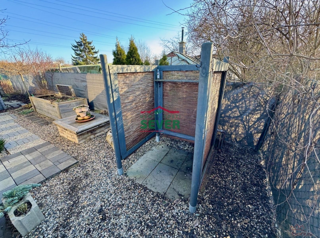 Nemovitosti SEVER vám zprostředkují koupi zahrady s chatou v osobním vlastnictví v Kadani, části obce Tušimice. Zahrada s chatou, o celkové ploše 486m2, se nachází v klidné části rekreační osady. Chata s užitnou plochou cca 30m2 se skládá z předsíně, společně řešeného sociálního zařízení, ložnice a kuchyňské části propojené s obývacím pokojem. Chata má zateplenou podlahu i strop, disponuje plastovými okny včetně sítí proti hmyzu a je napojená na elektřinu 230V, celoroční odběr pitné vody s vlastním vodoměrem s možností využití také sezónní užitkové vody, odpad je svedený do jímky s objemem více než 3000L. Chata aktuálně prochází kolaudačním řízením. Zahrada je rovinatá, udržovaná, nalézá se zde jezírko s posezením, okrasné keře, ovocné stromy, zahradní domek, kůlna a dřevník. Zahrada je kompletně oplocená a dobře přístupná z přilehlé zpevněné cesty. Parkování je možné přímo u zahrady. V případě zájmu zajistíme optimální variantu financování na tuto nemovitost za zvýhodněných podmínek pro naše klienty.