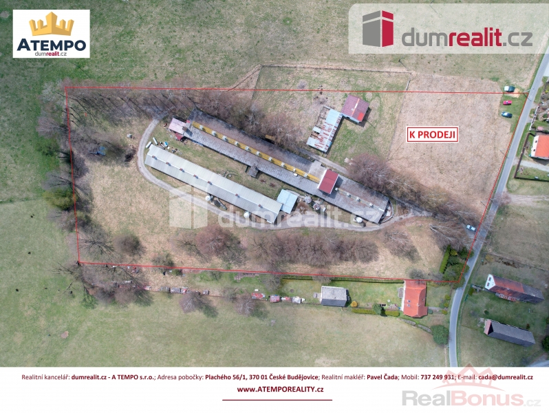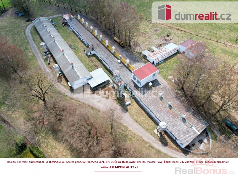 Cena je včetně provize RK a právního servisu. Více informací naleznete na www.atemporeality.cz, Dumrealit.cz Vám zprostředkuje prodej zemědělského objektu v obci Majdalena, Třeboňsko. Budovy sloužili pro chov prasat se zázemím a stojí na pozemku o celkové výměře 18.720 m se zastavěnou plochou 2.181 m. Pozemek s objekty leží na strategickém místě ve velmi žádané rekreační lokalitě CHKO Třeboňsko. Celou nemovitost lze využít pro podnikatelský záměr s přípravou výstavby domů k trvalému bydlení dle požadavků CHKO a obce. Po jednání s příslušnými úřady máme tuto variantu připravenu pro další zpracování. Druhou možností podnikatelského záměru je pokračování v zemědělské činnosti. Provozy živočišné výroby jsou technologicky rozděleny na automat řízený PC pro výkrmu a poloautomat pro porodnu a březárnu. V současné době jsou dle územního plánu plochy vedeny jako zastavitelné, s funkčním využitím pro výrobu a skladování zemědělské. Doporučuji osobní prohlídku. Více informací Vám poskytne realitní makléř Pavel Čada z RK A TEMPO s.r.o. fungující pod ochranou známkou dumrealit.cz. Těšíme se na prohlídce. Ev. číslo: 641079. Energetický štítek: G
