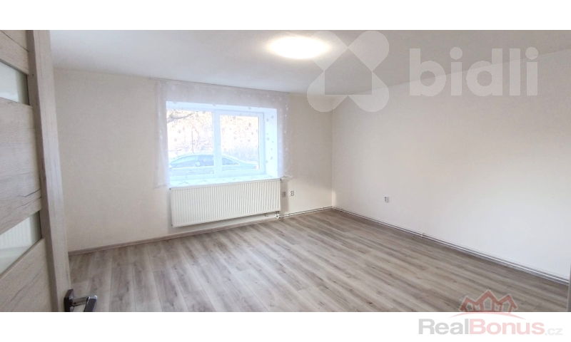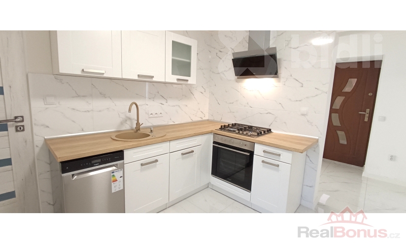 Vstup do domu vede z uzavřeného oploceného dvora do vstupní chodby, odkud je samostatný přístup do ložnice, obývacího pokoje i kuchyně, což zajišťuje praktické a komfortní dispoziční řešení. Kuchyň je vybavena novou moderní kuchyňskou linkou a novými spotřebiči včetně myčky nádobí. Na podlahách je položena kvalitní dlažba a vinyl, které podtrhují moderní charakter domu. Za kuchyní se nachází koupelna se sprchovým koutem a společnou toaletou. V zadní části domu je umístěna technická místnost s přístupem z venkovní části, což umožňuje praktické využití bez narušení obytného prostoru.