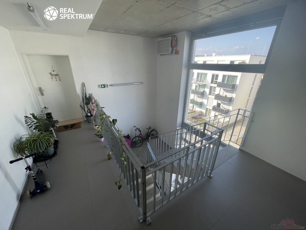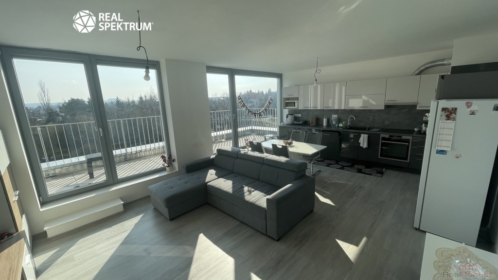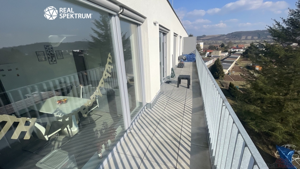 Velkou předností bytu je prostorná terasa o velikosti přibližně 20 m2, která poskytuje ideální místo pro ranní kávu, večerní posezení nebo relax po náročném dni.