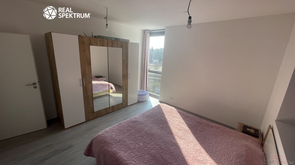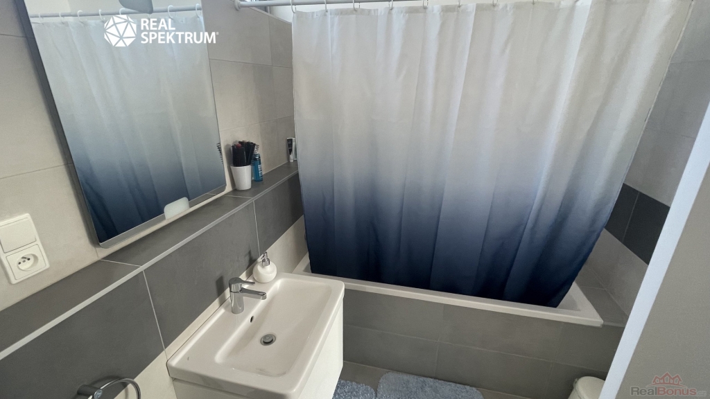Dominantou bytu je světlý obývací prostor s kuchyňským koutem, který je vybaven kuchyňskou linkou se spotřebiči ? k dispozici je lednice, myčka, trouba, varná deska a dále i pračka. Byt tak nabízí pohodlné nastěhování bez nutnosti dalších investic do základního vybavení.
