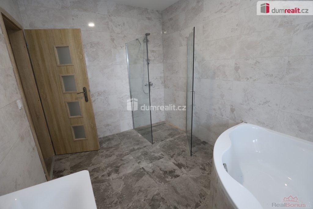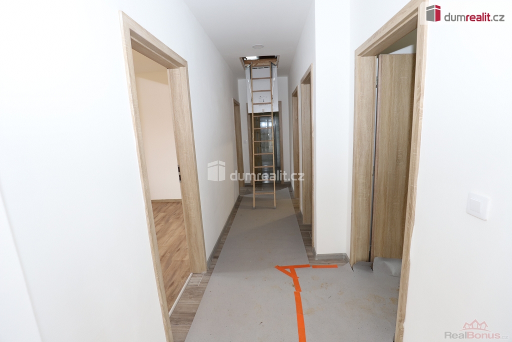 , Dumrealit.cz Vám zprostředkuje koupi novostavby rodinného domu 3+kk v Rájově u Mariánských Lázních. Dům se nachází na rovinatém pozemku o rozloze 816 m u silnice s bezproblémovým přístupem. Dům o rozloze 97 m nabízí dispozici 3+kk, je zde prostorný obývací pokoj spojený s kuchyňským koutem a francouzským oknem, z kterého je výstup na budoucí terasu, dále jsou zde dva samostatné pokoje, technická místnost, koupelna a samostatná toaleta. Dům z ytongových tvárnic má hotový krov s plechovou střechou ve tvaru tašek. V domě je připravena a rozvedena elektroinstalace, vodoinstalace, plastová okna, na podlahách je kombinace dlažby a vinylu. V domě jsou již hotové omítky, v prostorné koupelně s oknem je k dispozici vana i sprcha. Vytápění zajišťuje již dodané tepelné čerpadlo, v celém domě je podlahové vytápění, ohřev teplé vody zajišťuje bojler. Zdrojem vody je studna, dům je napojen na kanalizaci. Dům se prodává bez kuchyňské linky (je zde příprava). Součástí ceny není oplocení. Dokončená je venkovní bledě modrá omítka včetně zateplení. Obec Rájov se nachází v bezprostřední blízkosti Mariánských Lázní, nedaleko obce Zádub-Závišín, kde je vyhledávané golfové hřiště. Za domem je krásná cyklotrasa vedoucí přes Nimrod, Prameny, Polom, Kladskou a dále do Kynžvartu. V Mariánských Lázních je veškerá občanská vybavenost včetně úřadů, bank, restaurací, obchodů, jsou zde supermarkety LIDL, PENNY, TESCO, Kaufland, BILLA, DM, Planeo elektro, JYSK, super ZOO, TAKKO, KIK, Deichmann. Mariánské Lázně jsou úžasné místo pro život i odpočinek, jsou prošpikované sítí turistických, cyklistických a běžkařských tras. Sportovcům je k dispozici plavecký bazén, sportovní areál Viktorka, plochá dráha, zimní stadion pro bruslaře, lyžařská sjezdovka s lanovkou, jezdecká škola, tenisové kurty, v létě je v provozu koupaliště Lido s písečnou pláží. Úžasné městské parky nabízí krásná zákoutí: Kolonádu se zpívající fontánou a přilehlý labutí park, Ferdinandův pramen, Lesní pramen, Rudolfův pramen, Medvědí pramen, Geologický park, obůrku Hvozd s daňky a jeleny. Mariánské Lázně se roku 2021 dostaly na seznam světového kulturního dědictví UNESCO, skýtají klid lázeňského města se zdravou vodou a čistým ovzduším. Mariánské Lázně se nacházejí v blízkosti německých hranic, tedy je vhodné pro ty, kteří tam hledají pracovní uplatnění. Cena zahrnuje provizi RK a veškerý právní servis. V případě potřeby Vám rádi doporučíme naše prověřené finanční specialisty. Ev. číslo: 654928. Energetický štítek: B