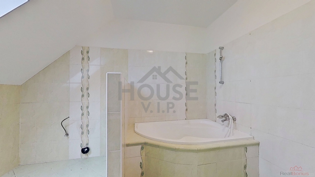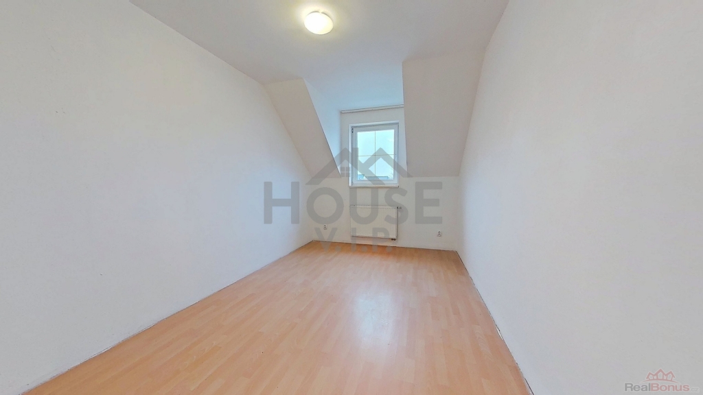 V prvním patře se nachází koupelna se sprchovým koutem, rohovou vanou a toaletou a dále tři samostatné pokoje, z nichž jeden je vybaven vestavěnou rohovou skříní. Druhé patro (podkroví) nabízí velkorysý pokoj se šikmými stropy, který může sloužit například jako ložnice, pracovna nebo herna. Dům je ve velmi dobrém technickém stavu, nicméně nový majitel může počítat s drobnými úpravami dle vlastních představ ? zejména s výměnou podlahových krytin v obývacím pokoji a v podkrovním pokoji a případnou modernizací kuchyňské linky. Energetický štítek se vyhotovuje, proto zatím uvádíme "G".