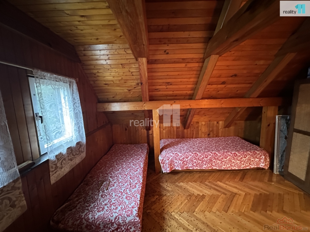 Chalupa má také balkon s výhledem do zahrady.