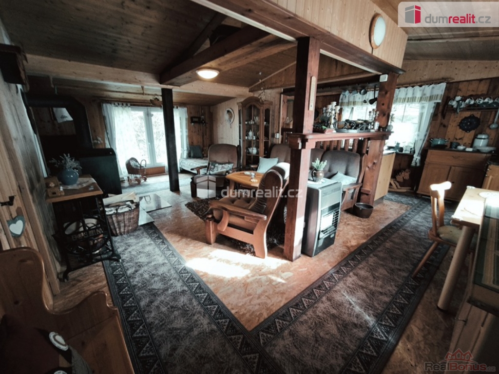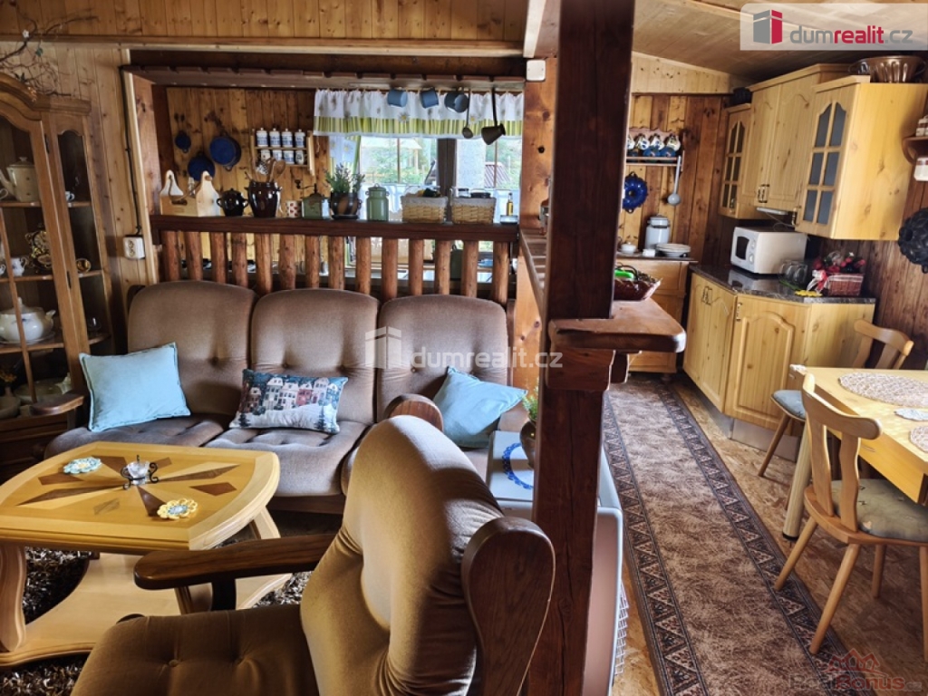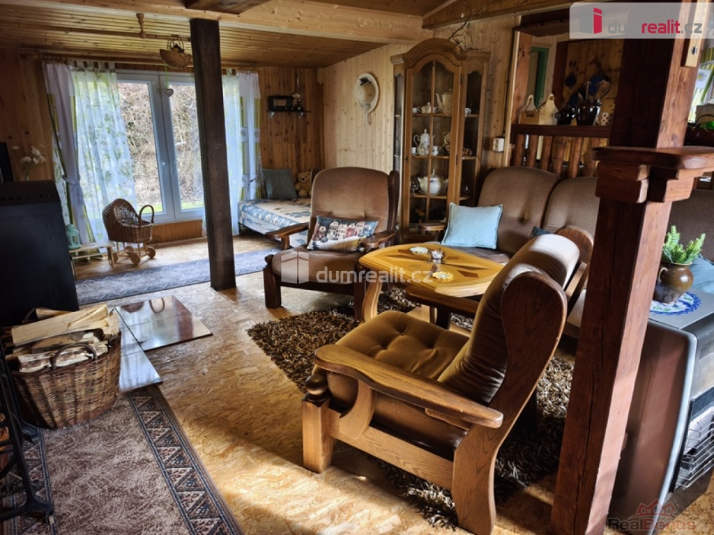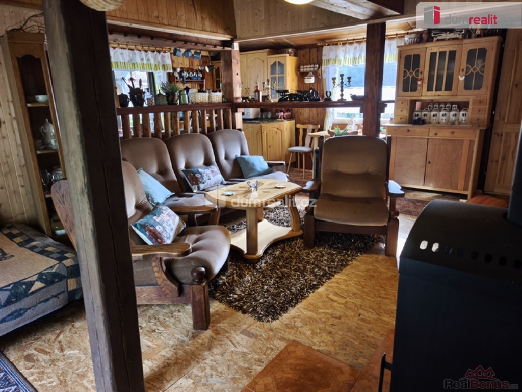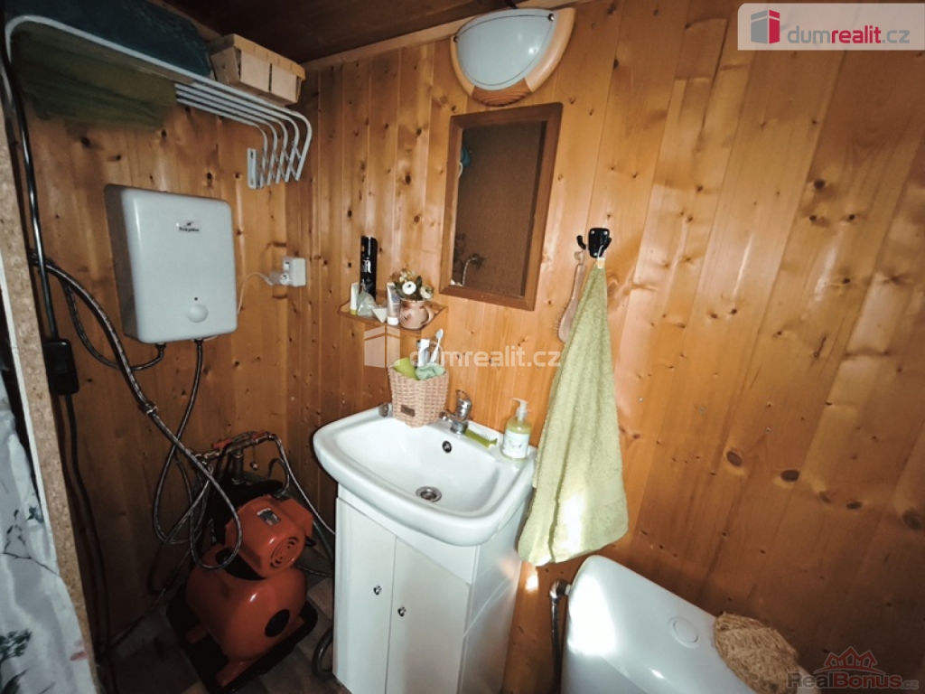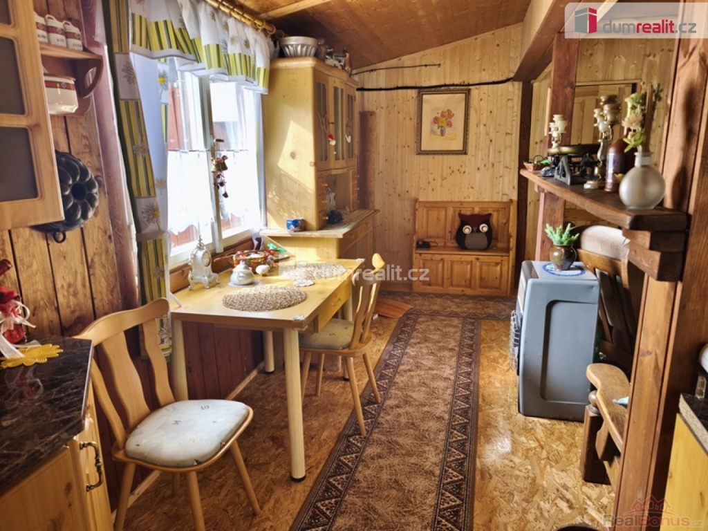 , Dumrealit.cz Vám zprostředkuje možný prodej velmi krásné chaty dřevostavba v osadě U tuleňů u obce Šťáhlavice. Chata je dispozičně velmi dobře řešená veranda s posezením, dále vstup do předsíně, ze které se dostaneme do prostorného obývacího pokoje s krbovými kamny. Z obývacího pokoje, propojeného do kuchyně s kombinovaným sporákem, linkou, dřezem na mytí nádobí a jídelním setem. Splachovací toaleta se sprchovým koutem, umyvadlem ohřev vody průtokovým ohřívačem. Velký bonus jsou samostatné vstupy do dvou ložnic. Rekonstrukce nová plechová střecha zateplená, nový, vyvložkovaný komín ke krbovým kamnům, Nové, zateplené podlahy OSB desky. Voda i odpad v plastu. Septik má obsah 3m. Velký bonus internet zdarma (vysílač na chatě) a kamerový systém. Chata se prodává plně vybavená. Voda z okapů svedená do jímky užitná na sprchování, splachování toalety a na mytí nádobí. Pitná voda z nedaleké studánky pro osadu kontrolovaná. Část pozemku (15m) je v osobním vlastnictví, ostatní plocha v nájmu vlastníkem je jedna osoba pro celou osadu LV 937