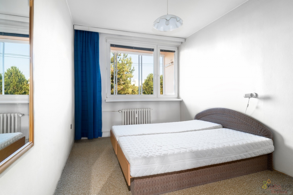 Byt o dispozici 3+1 a velikosti 70 m2 s dvěma prostornými lodžiemi, z nichž jedna z nich je prosklená se nachází ve 4. NP zděného domu bez výtahu.