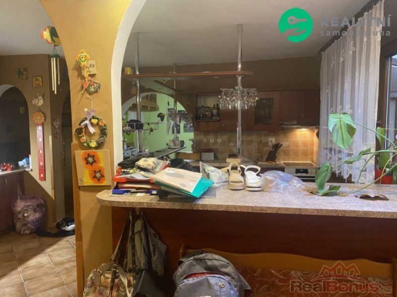2 dětské pokoje rozdělené šatnou, ložnice, jídelna , kuchyň a v obýváku mezonetový prostor třeba na pracovnu. Okolo domu zámková dlažba, terasa, bazén a zahradní domek. Udržována zahrada cca 1200m2