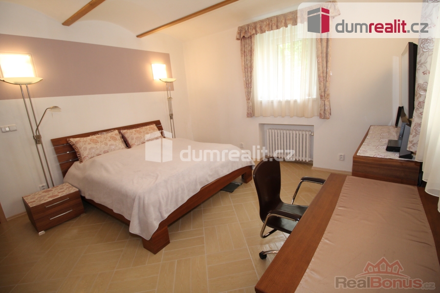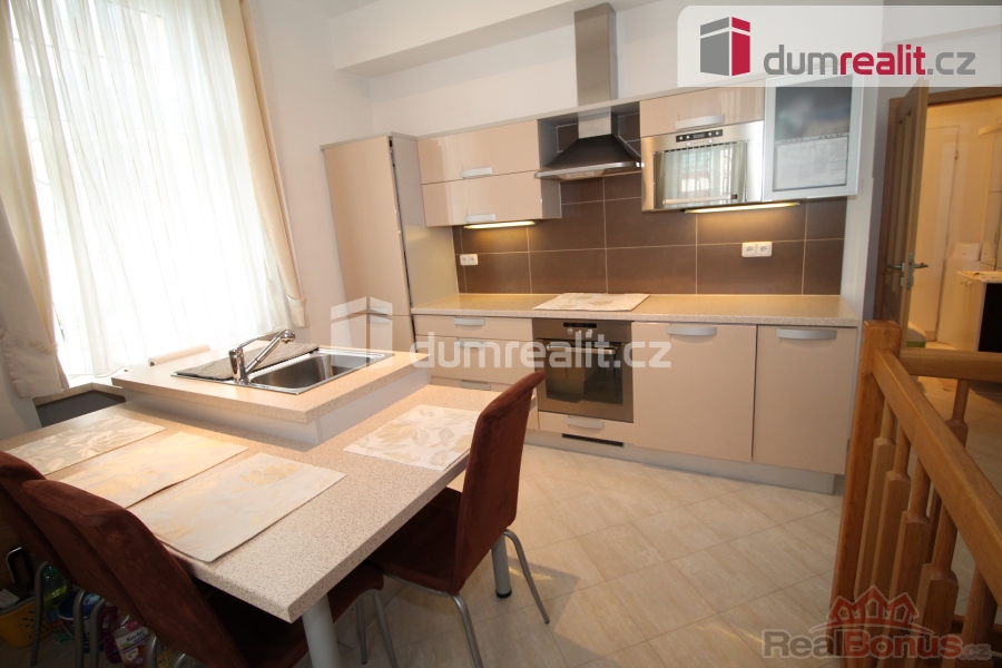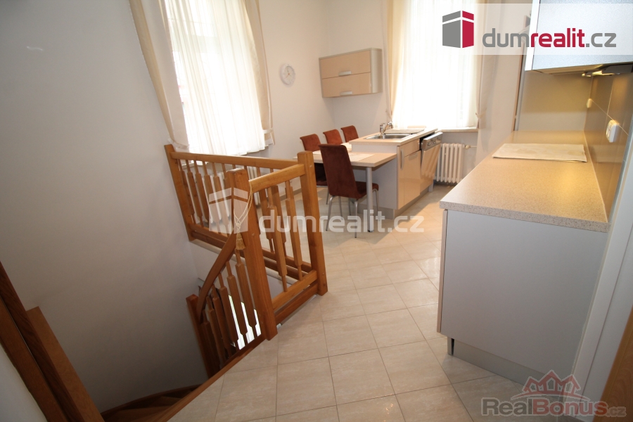 , Dumrealit.cz Vám zprostředkuje koupi krásného mezonetového bytu 3+1, který se rozkládá částečně v přízemí a v suterénu historické vily z 19. století v lázeňském centru v ulici Lidická v Mariánských Lázních. Bytová jednotka o celkové rozloze 90 m se skládá z předsíně, obývacího pokoje, kuchyně s jídelním koutem, koupelny se sprchou, toaletou a bidetem (v přízemí), dále po schodech dolů se nachází ložnice, koupelna s vanou a další toaletou, chodba a průchozí prostorný pokoj, kde by byla vhodná např. pracovna, šatna či posilovna. Byt prošel kompletní rekonstrukcí včetně elektroinstalace, vodoinstalace, štuků, podlah, jsou zde plastová okna, nové interiérové dveře. Byla instalována kvalitní kuchyňská linka, která zůstává včetně spotřebičů. Celý obvod domu byl podříznut a opatřen kvalitní hydroizolací s tím, že bytová jednotka je jako "ve vaně"). Byt se prodává včetně vybavení, po dohodě je možné byt samozřejmě také vyklidit. Vytápění a rozvod teplé vody zajišťuje nově instalovaný plynový kotel. Budova je ve velmi dobrém stavu. Lokalita, resp. ulice Lidická je jedna z nejkrásnějších ulic města v příjemném prostředí pod Gymnáziem a kostelem s výhledem na upravené budovy a hotely, cca 200 m od lesa, zároveň blízko Hlavní třídy, pošty, parku, stanice MHD. 150 m od od domu jsou potraviny pro případný menší nákup. V Mariánských Lázních je veškerá občanská vybavenost včetně úřadů, bank, restaurací, obchodů, jsou zde supermarkety LIDL, PENNY, TESCO, Kaufland, BILLA, DM, Planeo elektro, JYSK, super ZOO, TAKKO, KIK, Deichmann. Mariánské Lázně jsou úžasné místo pro život i odpočinek, jsou prošpikované sítí turistických, cyklistických a běžkařských tras. Sportovcům je k dispozici plavecký bazén, sportovní areál Viktorka, plochá dráha, zimní stadion pro bruslaře, lyžařská sjezdovka s lanovkou, jezdecká škola, tenisové kurty, v létě je v provozu koupaliště Lido s písečnou pláží. Úžasné městské parky nabízí krásná zákoutí: Kolonádu se zpívající fontánou a přilehlý labutí park, Ferdinandův pramen, Lesní pramen, Rudolfův pramen, Medvědí pramen, Geologický park, obůrku Hvozd s daňky a jeleny. Výletní kavárna Panorama, vyhlášené výletní místo Miniatur Park, Pirátův pramen a Prelátův pramen se skvělým vyžitím a dřevěnými prolézačkami a lanovým parkem pro děti. Mariánské Lázně se roku 2021 dostaly na seznam světového kulturního dědictví UNESCO, skýtají klid lázeňského města se zdravou vodou a čistým ovzduším. Mariánské Lázně se nacházejí v blízkosti německých hranic, kde je dostatek pracovního uplatnění a možnost výhodných nákupů. Byt je prost jakýchkoli nároků třetích stran či věcných břemen. Cena zahrnuje provizi RK a veškerý právní servis. V případě zájmu Vám rádi doporučíme naše prověřené hypoteční poradce. Ev. číslo: 647701. Energetický štítek: G (25 kWh/m2/rok).