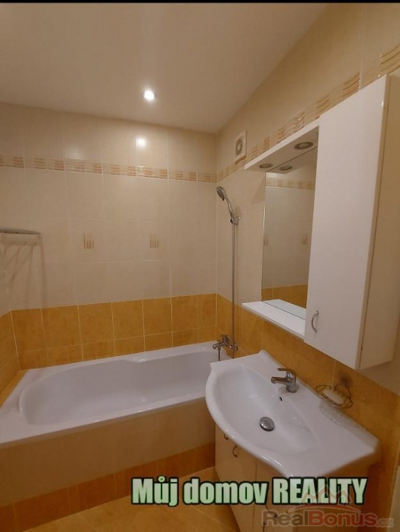 Koupelna je vybavena vanou, umyvadlem se skříňkami, vyhřívaným zrcadlem a novou pračkou. WC má bidetovou spršku s regulací teploty vody.