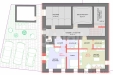 Dům nabízí potenciál přestavby na tři patra a až 8 bytových jednotek. Pro každé patro je již připraven návrh půdorysného rozmístění bytů.