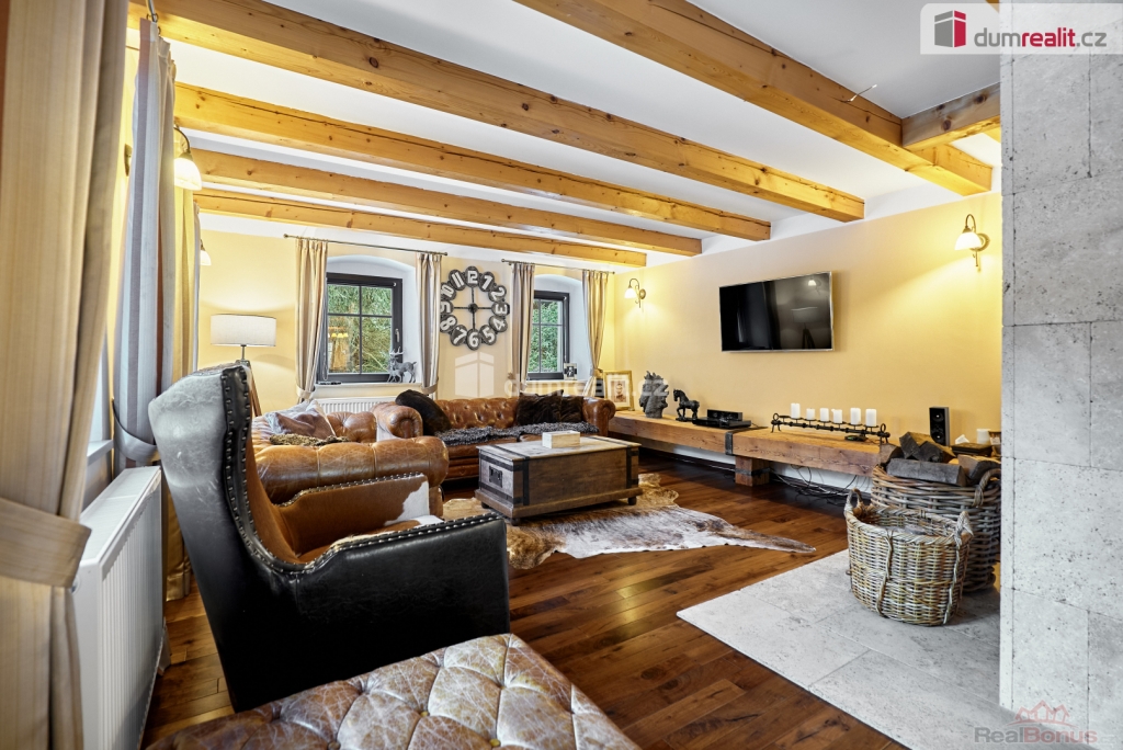 K domu patří luxusní víceúčelová společenská místností až pro 20 lidí. Společenská místnost je vybavena například krbem vč. grilu, kuchyňskou linkou, WC a prostorným podkrovím (možnost využití pro přespání hostů či jako dětská herna). Dále venkovní ohniště, venkovní altán pro grilování a posezení s přáteli, garáž pro uskladnění zahradní techniky, dřevník nebo venkovní kryté stání pro automobily. V těsné blízkosti domu (3 min. chůze) se nachází nástupní stanice lanovky Plešivec. V blízkosti jsou také restaurace a turistické atrakce. Vzdálenost od města Ostrov 15 min automobilem nebo od Karlových Varů 20 min. Tuto nemovitost lze hradit hypotečním úvěrem, který Vám rádi pomůžeme vyřídit v našem hypotečním centru. Kontaktujte nás pro více informací nebo prohlídku. Ev. číslo: 650257. Energetický štítek: G