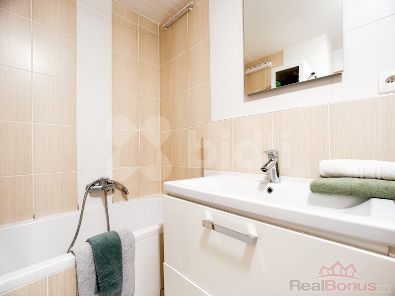 Bytová jednotka se nachází ve 4.NP a je kompletně zařízená nábytkem včetně lednice a pračky.