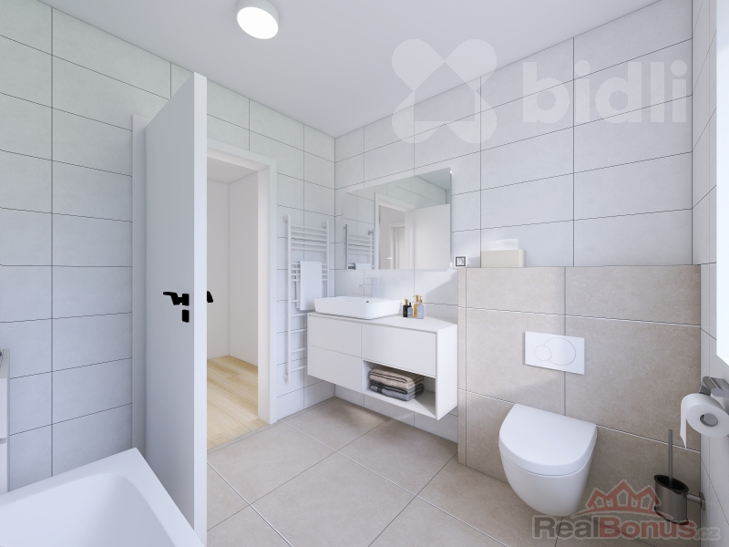 V rámci developerského projektu Bidli ve Vrskmani Vám nabízíme k prodeji nízkoenergetický mezonetový byt o dispozici 3+kk, s podlahovou plochou 85,5 m2. V přízemí se nachází obývací pokoj s kuchyňským koutem, koupelna a zádveří. V patře je ložnice, pokoj, koupelna a chodba. K bytu náleží nenáročná zahrada o výměře 190 m2. Byty jsou budovány v rámci trojdomů, tj. domů se třemi jednotkami a připomínají tak spíše řadové rodinné domy.