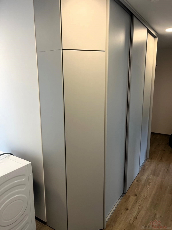 Samotný byt nabízí vstupní chodbu, kde je dále vstup do ložnice, dětského pokoje, kuchyně s obývacím pokojem, koupelny s vanou a sprchovým koutem zvlášť a oddělené WC. Z obývacího pokoje s kuchyňským koutem je vstup na balkón 5,3 m2 na JV stranu. Kuchyňská linka je kompletně vybavena indukční varnou deskou, troubou, digestoří, myčkou a vestavěnou lednicí. V chodbě jsou dvě vestavěné skříně. V jedné úložný prostor na domácí náčiní (vysavač, úklidové prostředky apod.) spolu s pračkou a sušičkou. Ve druhé, větší skříni jsou připravené police a šatní tyče pro uložení oblečení a bot. Do bytu je zavedena pozemní TV anténa, připraveny jsou rozvody pro internet. Byt je vhodný pro nekuřáky a bez domácích mazlíčků.
