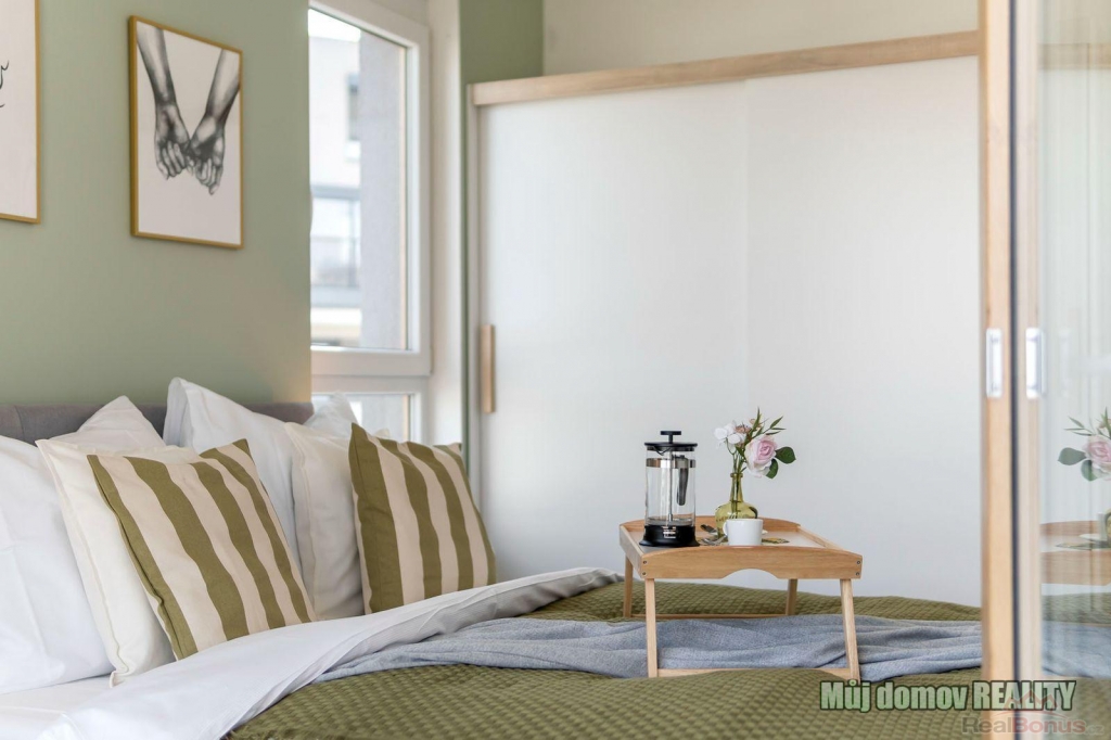 **Pronájem plně vybaveného bytu 2+kk s balkonem, parkovacím stáním a sklepem Praha 9, Hloubětín**