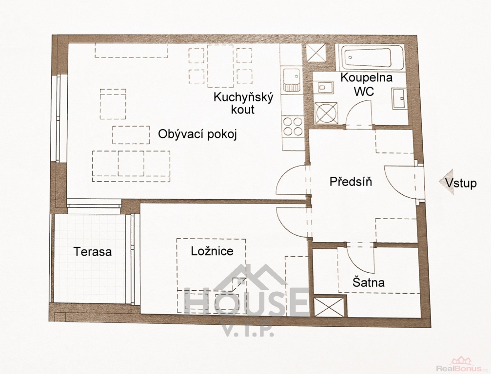| Dispozice bytu | 2+kk |