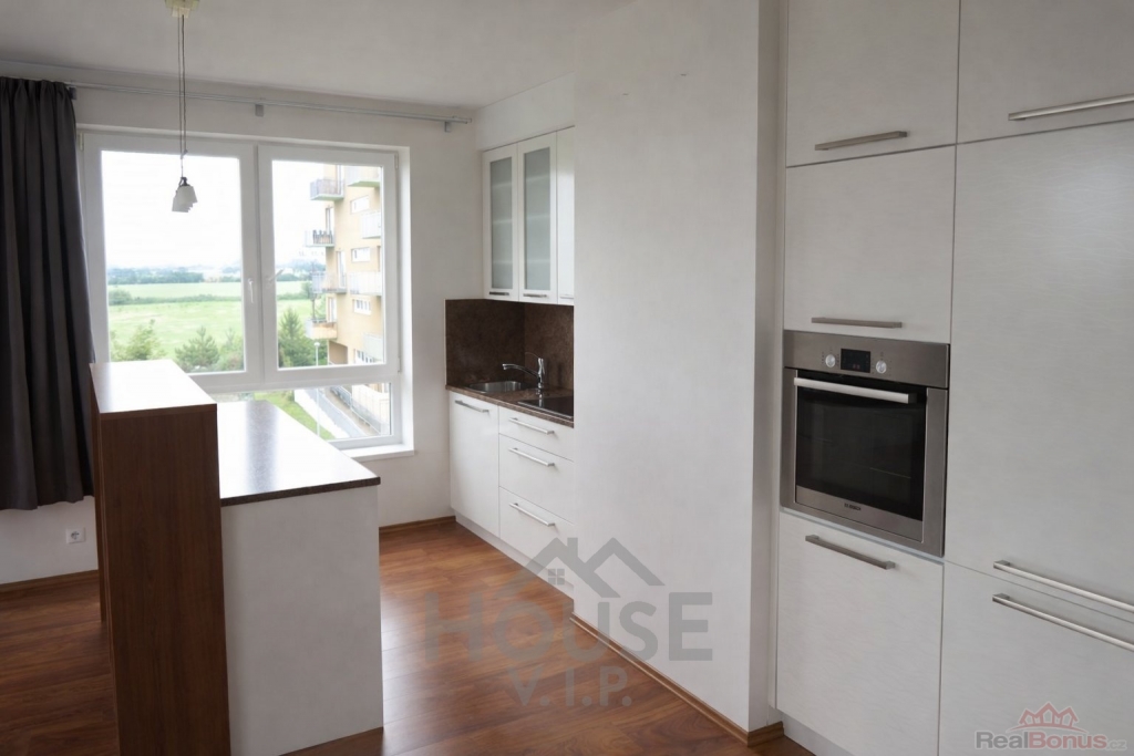 Byt je orientovaný na severovýchod a nabízí moderní interiér s kvalitní kuchyňskou linkou na míru. Najdete zde vestavěnou sklokeramickou varnou desku Bosch, digestoř Bosch, elektrickou troubu Bosch, myčku Miele a lednici s mrazákem Bosch. Součástí je také praktický kuchyňský ostrůvek. Na podlahách je položena kombinace lamina a dlažby, vytápění je řešeno ústředním topením.