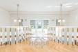 V přízemí se nachází velký krásný obývací pokoj se světlým italským nábytkem, který je propojen s jídelnou a kuchyní jako jeden komplex pro setkání a oslavy. Z jídelny je přístup na velkou krytou terasu a do zahrady.