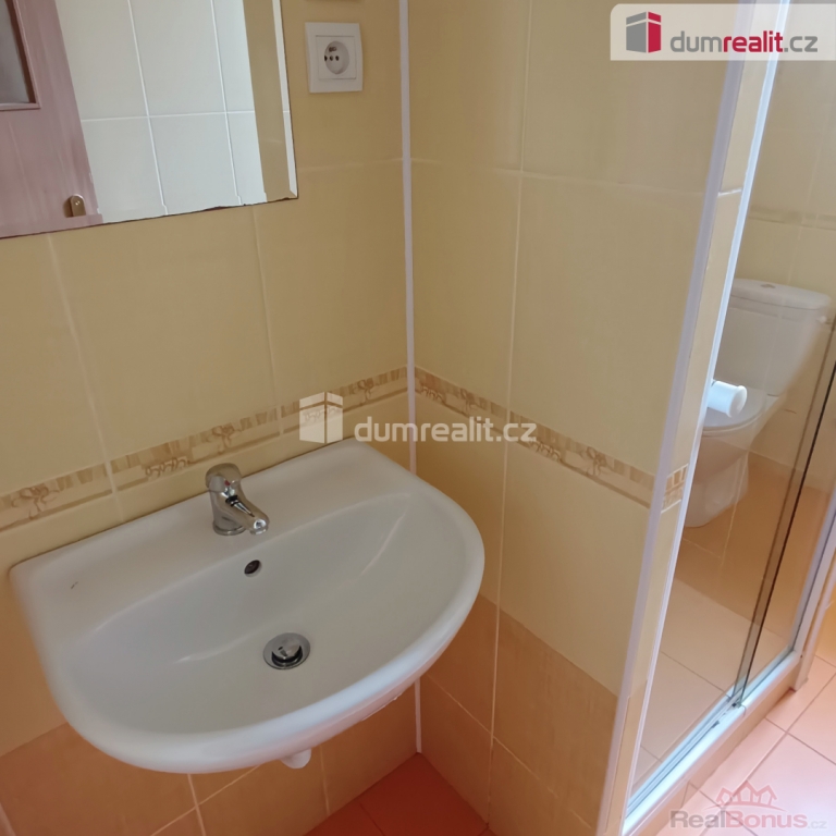 Koupelna je vybavena sprchovým koutem, toaletou a nezbytným příslušenstvím. Zde je také umístěn samostatný plynový kotel na ohřev vody. Teplo je etážově rozvedeno do radiátorů po celém bytě. Okna jsou plastová. Část domovní chodby slouží jako uzavřená předsíň v podílovém užívání pro tento i sousední byt. Je uzamykatelná a dobře všem poslouží k odkládání venkovní obuvi a ošacení. O čistotu a úklid společných domovních prostor se nájemníci starají sami. Bytová jednotka se nabízí k okamžitému podnájmu max. dvou osob, nekuřáků bez domácích mazlíčků.