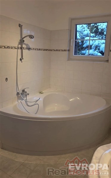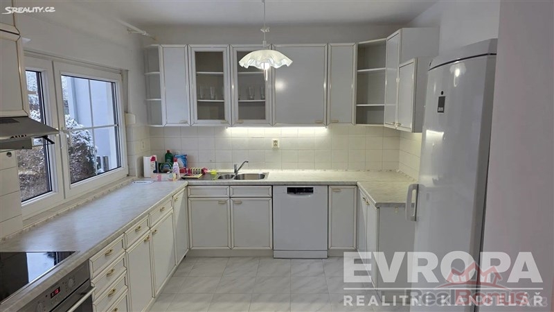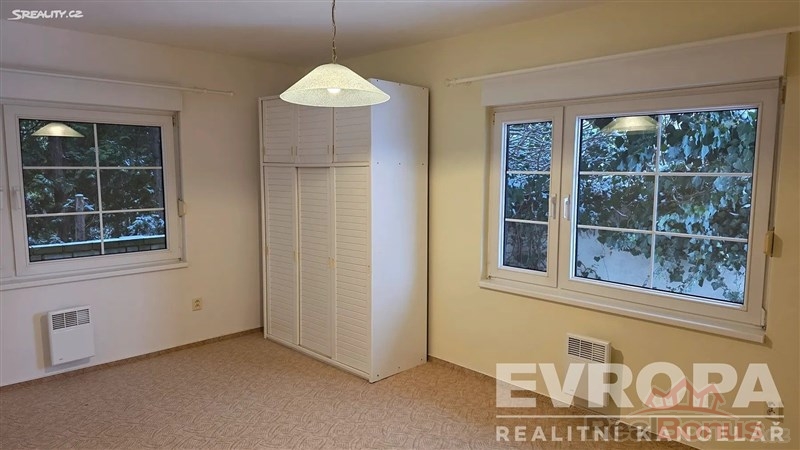 Pronájem částečně vybavené vily z roku 2000 s vnitřním vyhřívaným bazénem, rezidenční zástavba Praha Nebušice, krásná zahrada s rohovým pozemkem odcloněná vzrostlým živým plotem. Dispozice domu je 7+1 ve dvou patrech. V přízemí je vstupní hala, zařízená kuchyň se spotřebiči (sporák, pračka, myčka, sušička, trouba, lednice), ložnice, WC, koupelna s rohovou vanou + sprchový kout, jídelna, obývací pokoj s krbem a přímý vstup na zahradu, vnitřní bazén. V patře najdete 5 pokojů, koupelnu s rohovou vanou, WC, balkón.