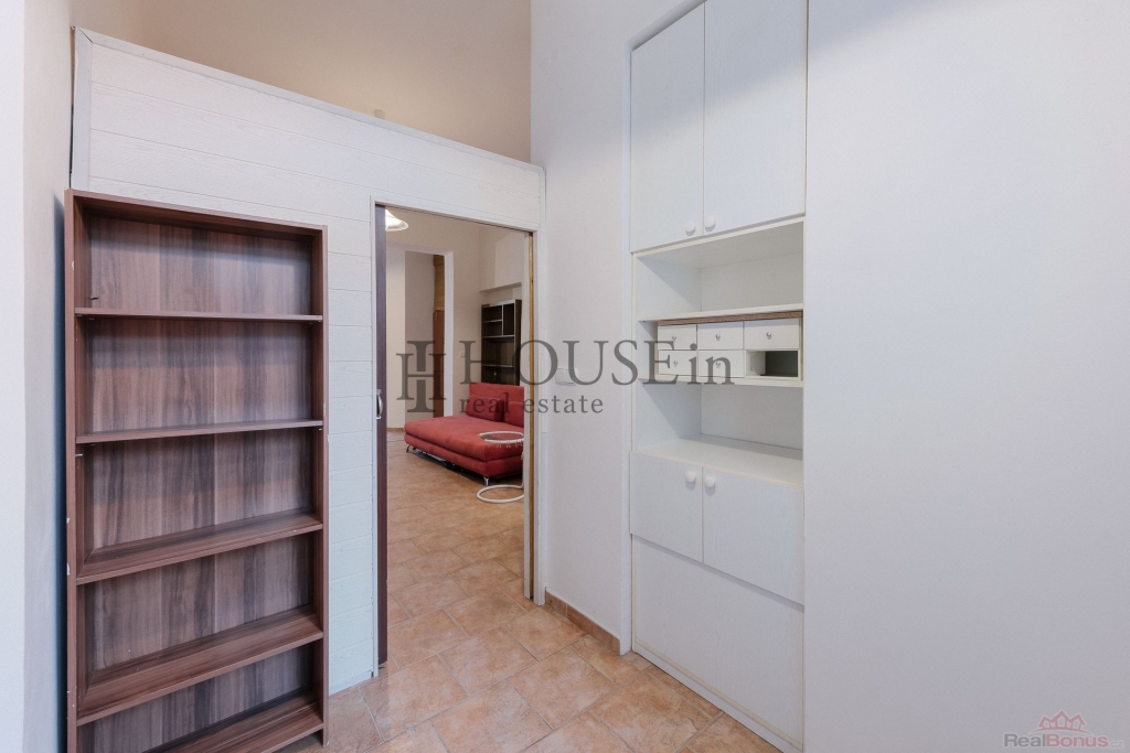 Byt má praktickou dispozici: předsíň se skříní, hlavní obytný prostor s kuchyňskou linkou, samostatnou ložnici a koupelnu se sprchovým koutem. Vstup do bytu je přímo z ulice. Byt se pronajímá částečně zařízený ? k dispozici je kuchyňská linka, lednice s mrazákem, indukční vařič, digestoř, pračka, TV, sedačka, obývací stěna a skříně.