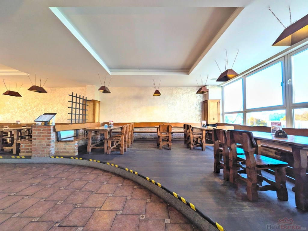 Restaurace se nachází ve 2.NP komerční budovy a zahrnuje celkovou plochu 460m2. Vstup do restaurace je vedený po vlastním schodišti z přilehlé pěší komunikace. K restauraci dále náleží venkovní terasa o výměře 150m2. Plocha terasy není započítána v celkové ploše nebytového prostoru.