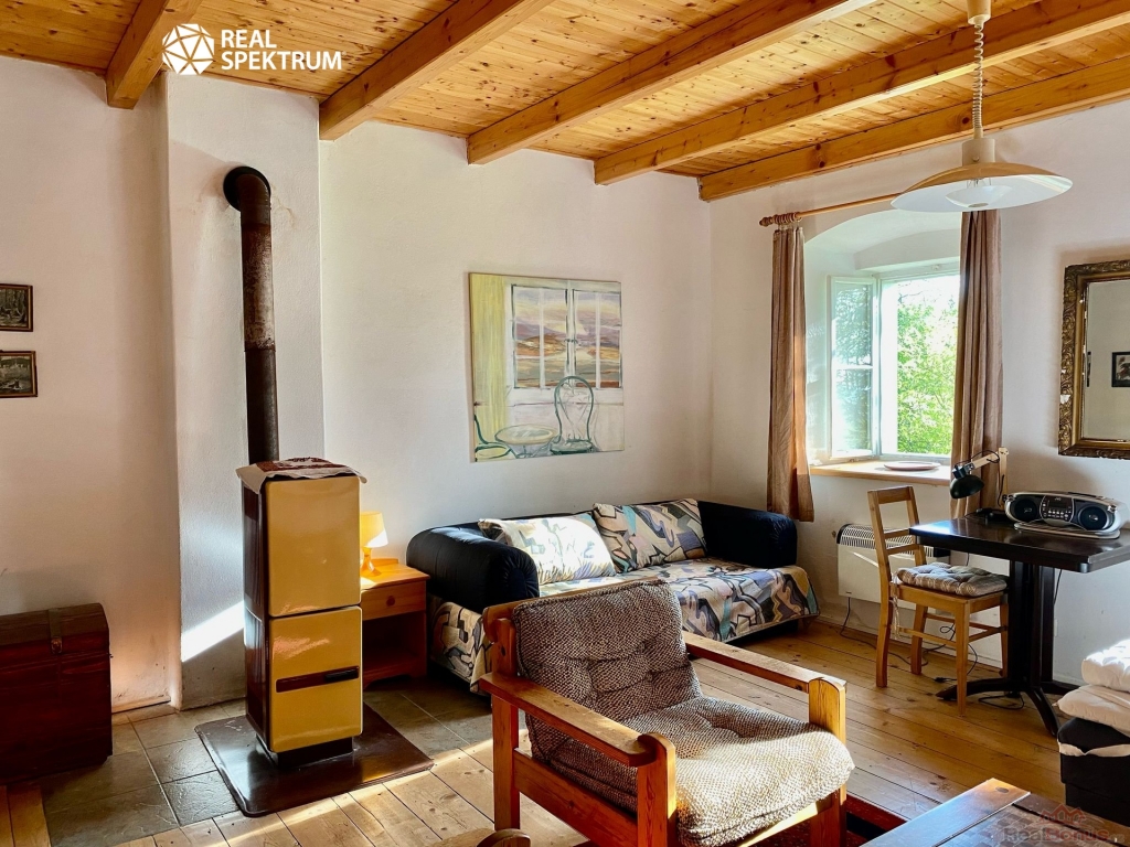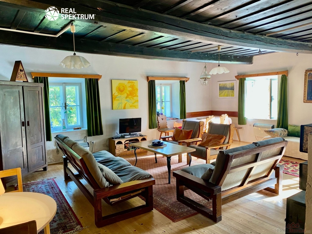 Nemovitost je přízemní selské stavení ve tvaru ?U?, Z prostorné chodby je přístup do kuchyně, velké jizby ? obývacího pokoje s krbovými kamny, ložnice č. 1, ložnice č. 2 a dvou koupelen, po schodech se dostane do podkroví, kde je ložnice č. 3 a půdní prostory skýtající možnost rozšíření - vestavby. Dále se z chodby dostanete na vnitřní dvorek o výměře cca 5x5m a také do stodoly a technické místnosti.