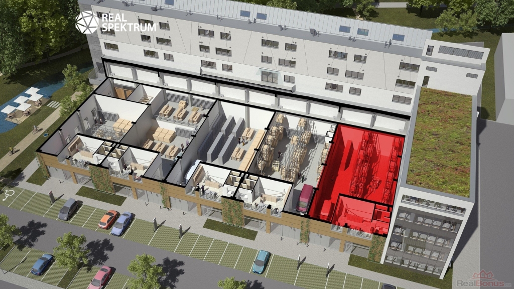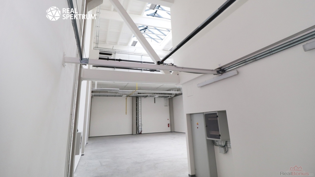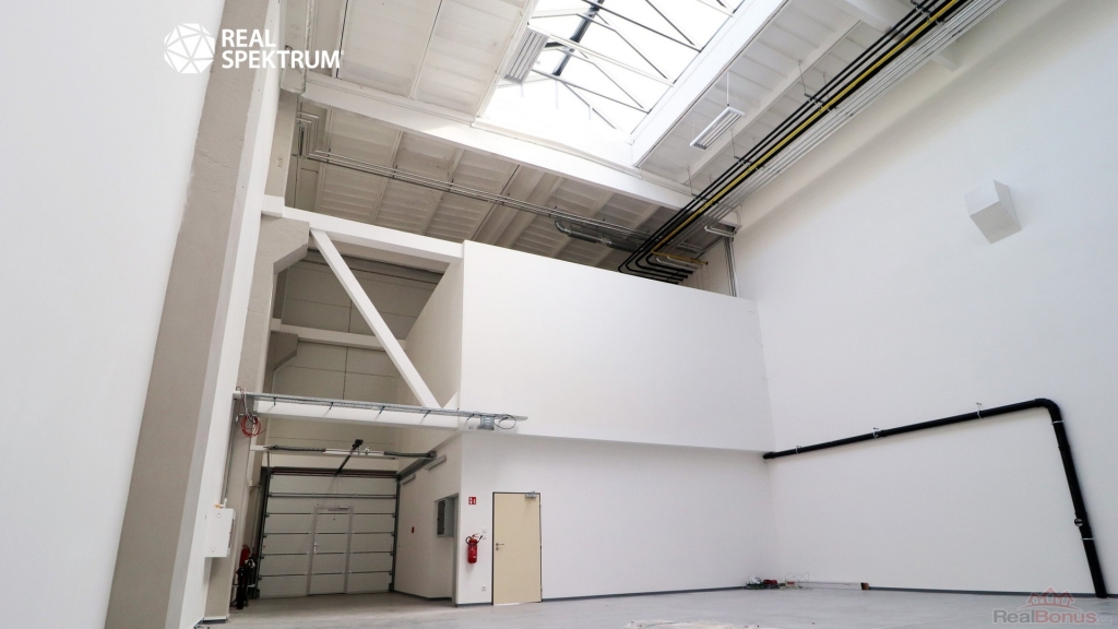 Celek se skládá ze dvou flexibilních jednotek s celkovou plochou 645 m2, z toho přibližně 480 m2 skladové nebo výrobní části a 165 m2 kancelářského zázemí. Dispozice umožňuje efektivní rozdělení provozu ? přízemní část je určena především pro skladování, logistiku nebo lehkou výrobu, zatímco administrativní část nabízí komfortní zázemí pro management a zaměstnance. Díky velkým proskleným průčelím mohou prostory zároveň sloužit jako showroom, výdejní místo nebo zákaznické centrum.
