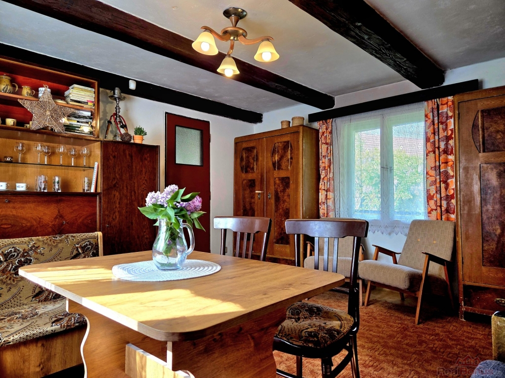 Součástí nemovitosti je také samostatná garáž o výměře 32 m2, která nabízí pohodlné parkování pro vaše vozidlo a dostatek úložného prostoru pro zahradní nářadí nebo sportovní vybavení, jejíž součástí je také dílna se samostatným vchodem. Dům je v dobrém technickém stavu a nabízí široké možnosti pro úpravy interiéru podle vašich představ. Vnitřní dispozice je prakticky řešena, což zaručuje pohodlné bydlení pro celou rodinu. Dům má vlastní studnu a před třemi lety byl připojen na vodovodní řad a obecní kanalizaci. Před 3 lety byli také k domu připojena dvě tepelná čerpadla vzduch - vzduch, která zajišťují úsporné vytápění domu a při jejich instalaci proběhla také rekonstrukce elektřiny. V domě se také nachází krbová kamna, která v zimě vytvářejí nezaměnitelnou atmosféru praskajícího dřeva v krbu. Po celém domě jsou také rozvedeny radiátory napojené na kotel na tuhá paliva, který lze jednoduše nahradit elektrokotlem. Na své si tu přijdou i zahrádkáři, jelikož obec se nachází v úrodném kraji polabské nížiny a na pozemku je do jednoho metru černozem, ve které se flóře více než daří. Dům je v perfektním technickém stavu, protože před 20 lety byla původní chalupa zbourána a od základů až po střechu vybudována její kopie. Takže v domě není vlhkost, žádná hniloba, zdivo je suché a tak stačí aby jste si bez větších investic přizpůsobili jen interiér dle svých představ. Také poloha domu v obci je perfektní. Dům se nachází na konci obce, kde prakticky neprojíždí žádná auta a tak je tam absolutní klid. Mezi sousedy vládnou nadstandardní vztahy.