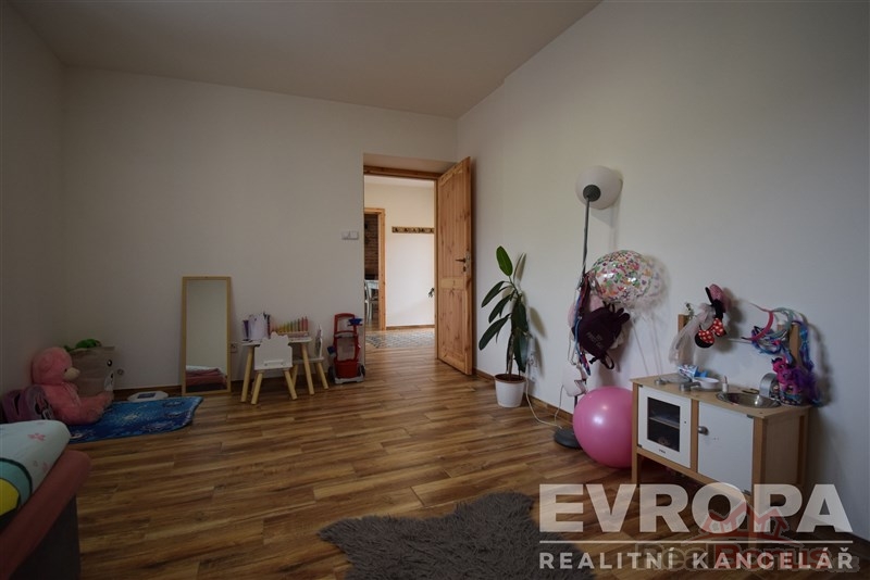 Ve výhradním zastoupení Vám nabízíme hezký a útulný rodinný dům o dispozici 3+kk s užitnou plochou 72 m2. Dům stojí na pozemku o velikosti 266 m2 se zastavěnou plochou 102 m2. Dispozice domu je prakticky řešena. Vchod do domu je situován z východní strany domu a to z vlastního pozemku. Za vchodovými dveřmi je vstupní hala (5,26 m2), ze které se vchází přímo do jednotlivých místností, koupelny se sprchovým koutem a WC (5,36 m2), do dětského pokoje (14,6 m2), do ložnice (13,79 m2), do technické místnosti (1,26 m2) a dále do hlavní části domu, tj. kuchyňský kout s jídelnou a obývacím pokojem (31,64 m2).