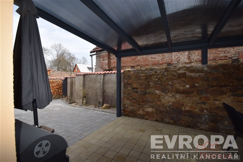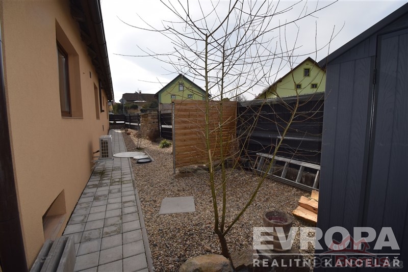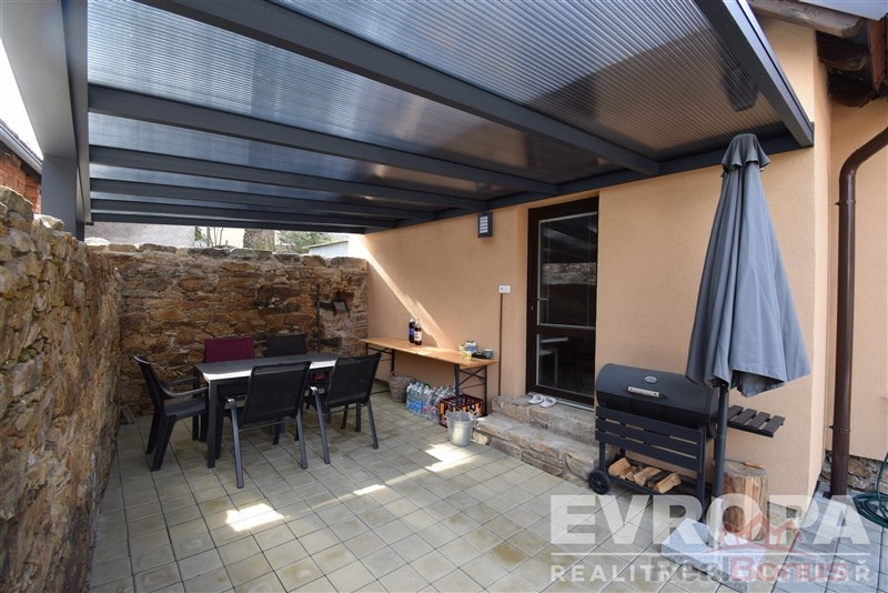 Rekonstrukcí prošlo i okolí domu, předzahrádka a vlastní dvorek, který je zpevněný zámkovou dlažbou a umožňuje tak parkování na vlastním pozemku pro dvě auta. V roce 2025 bylo provedeno nové oplocení, postaven malý zahradní domek a vybudována velká hliníková pergola se střešní krytinou z polykarbonátu. Prostorná pergola nabízí v letních měsících příjemné venkovní posezení a v zimních měsících se tento prostor dá využít jako přístřešek pro osobní auto.