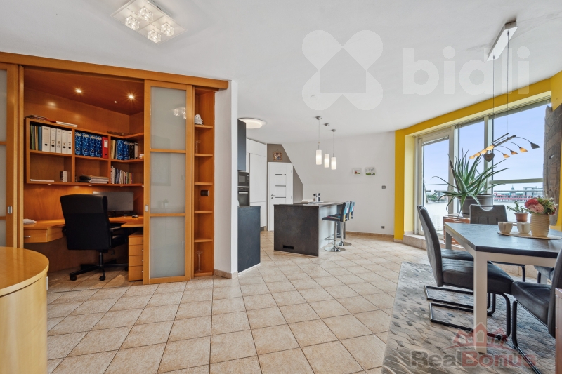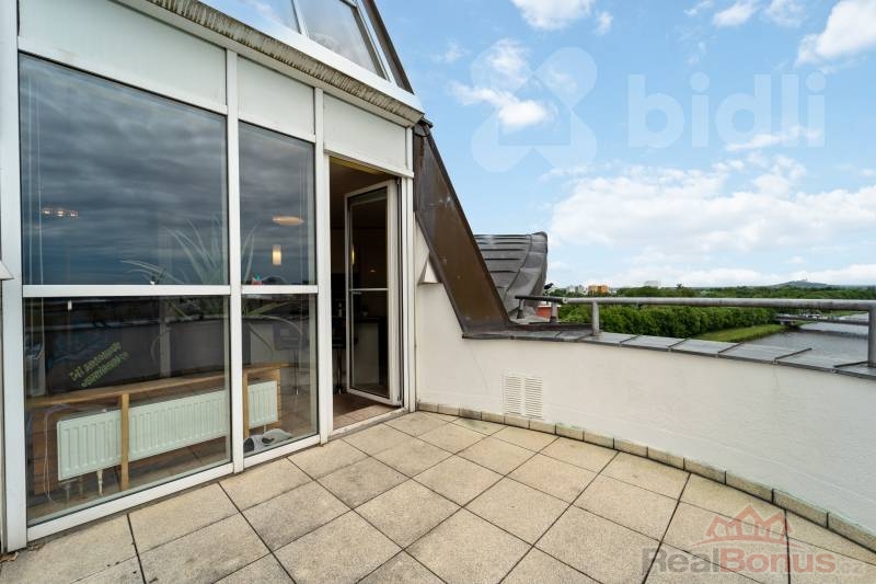 Nabízíme k prodeji výjimečný mezonetový byt umístěný v posledních podlažích bytového domu Poseidon na adrese Nábřeží Závodu Míru 2737. Samotná podlahová plocha bytu činí 141 m2, navíc k němu náleží dvě terasy o velikosti 9,74 m2, a 5,97 m2, a také sklepní prostor (2 m2). Celková užitná plocha tak dosahuje 158,71 m2.
