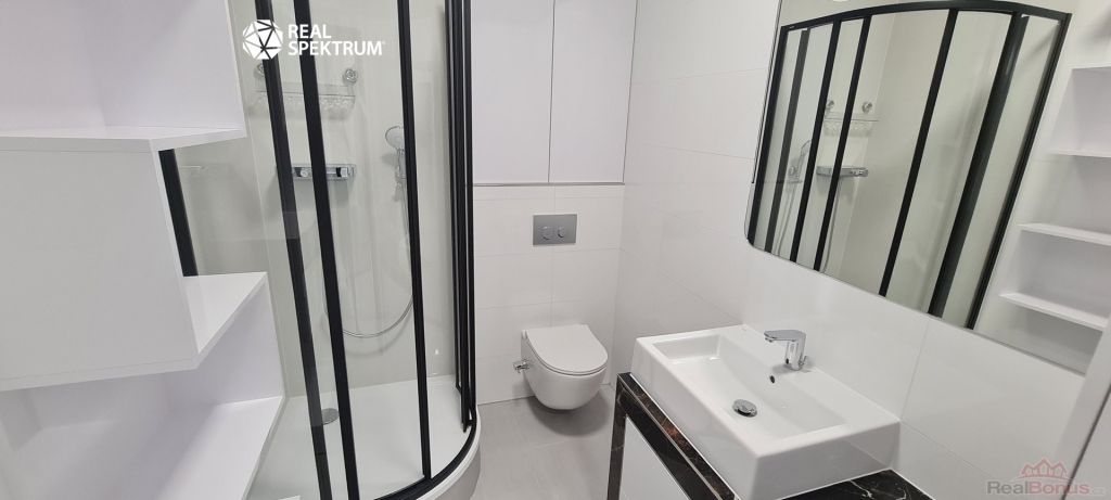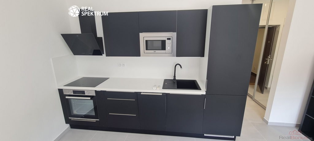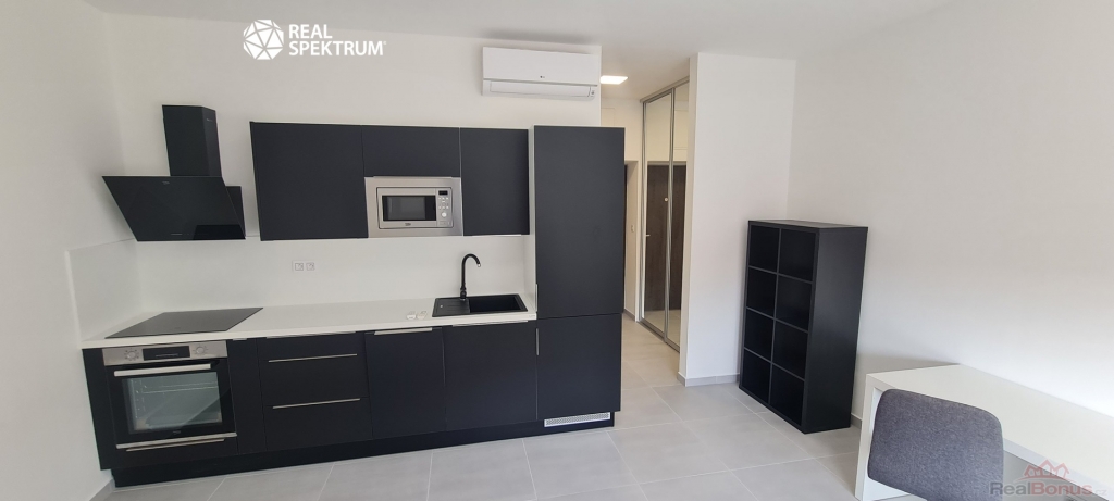 Byt se nabízí vybavený, kde se nachází nová kuchyňská linka se spotřebiči (varná deska, trouba, digestoř, myčka, mikrovlnka, lednička s mrazničkou), manželská postel, jídelní stůl, židle, pracovní stůl se židlí a ve vstupní chodbě najdete velkou vestavěnou skříň. Koupelna je vybavena pračkou, sprchovým koutem, umyvadlem a toaletou.
