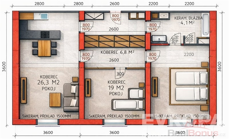 | Dispozice bytu | 3+kk |