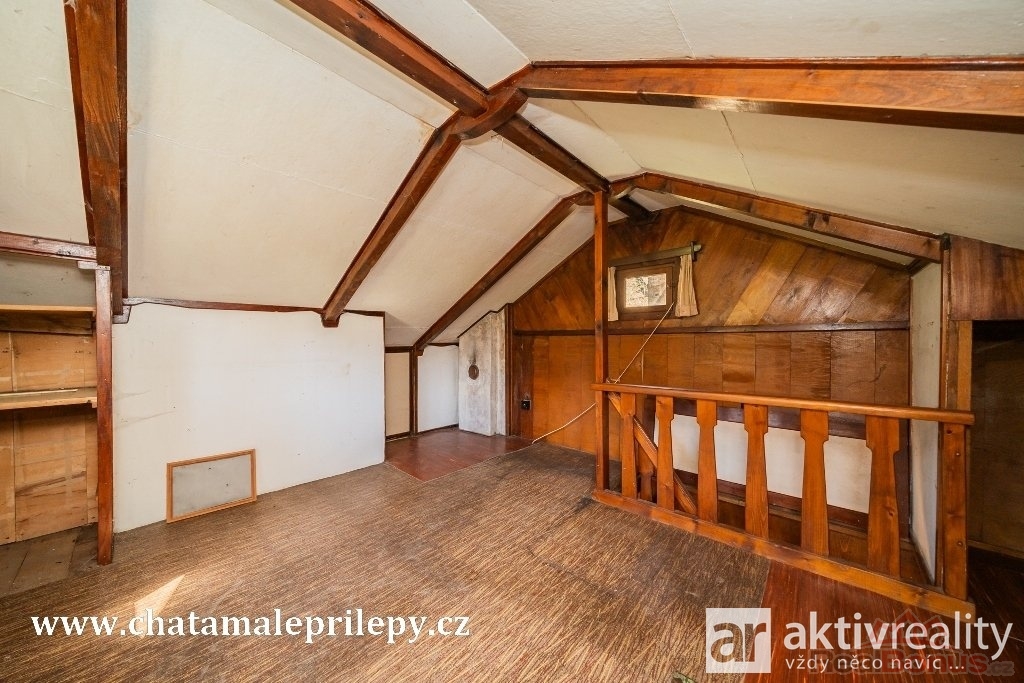 V přízemí vás čeká předsíň, malá komora a útulný obývací pokoj s koutem pro kuchyňku a s rustikálním krbem, kde si můžete užít teplé večery. Po krátkém výstupu po schodišti se dostanete do podkroví, které bude pravděpodobně sloužit jako ložnice, kde vás čeká klidný spánek a odpočinek po dni stráveném procházkami nebo výlety do okolní přírody. Do chaty je zavedena elektřina. Na chatu navazuje malá kůlna, kde je i místo pro chemické WC.