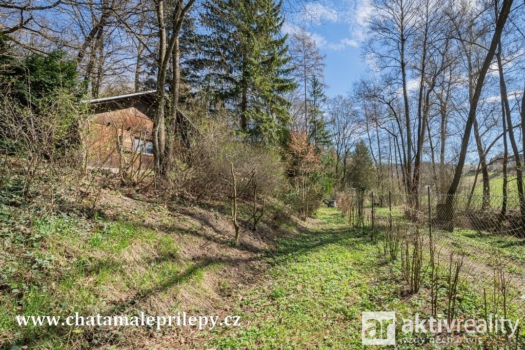 Okolo chaty na pozemku velkém 1 007 m2 se nachází malebná zahrada s okrasnými keři a stromy, ideální pro odpočinek a grilování. Nad chatou se rozprostírá část pozemku, která je zalesněná a svažitá.