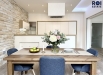 kuchyňská linka s velkým množstvím úložných prostor, vestavěné spotřebiče nejvyšší kvality včetně varné desky, trouby, myčky a lednice, dvě chladničky (klasická a na víno/nápoje), integrovaný kávový koutek s možností skrytí, barový pult s návazností na jídelní prostor